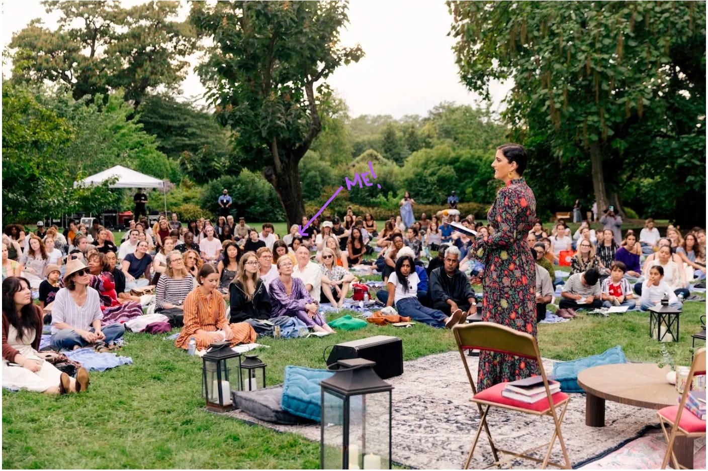 There were about 300 of us, yet it still felt personal. A few thoughtful details — something to sit on, something to write in, and the garden itself holding us — transformed a crowd of strangers into a community. And in that gathering, there was a kind of quiet magic, the closest I’ve ever come to feeling like a real-life fairy.