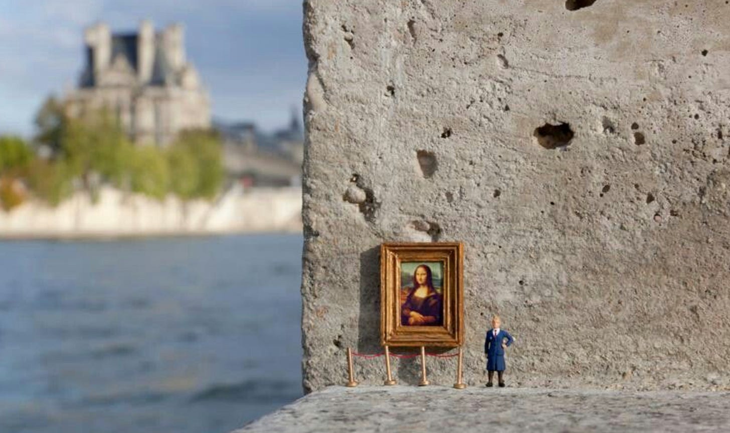 Unexpected art placement — A miniature painting tucked into a bookshelf or a frame hung low enough for children to notice first.